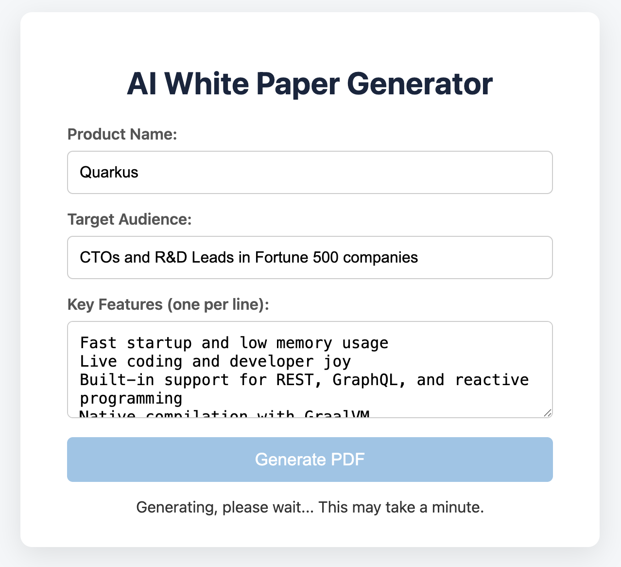 From Prompt to PDF: Build an AI-Powered White Paper Generator with Quarkus