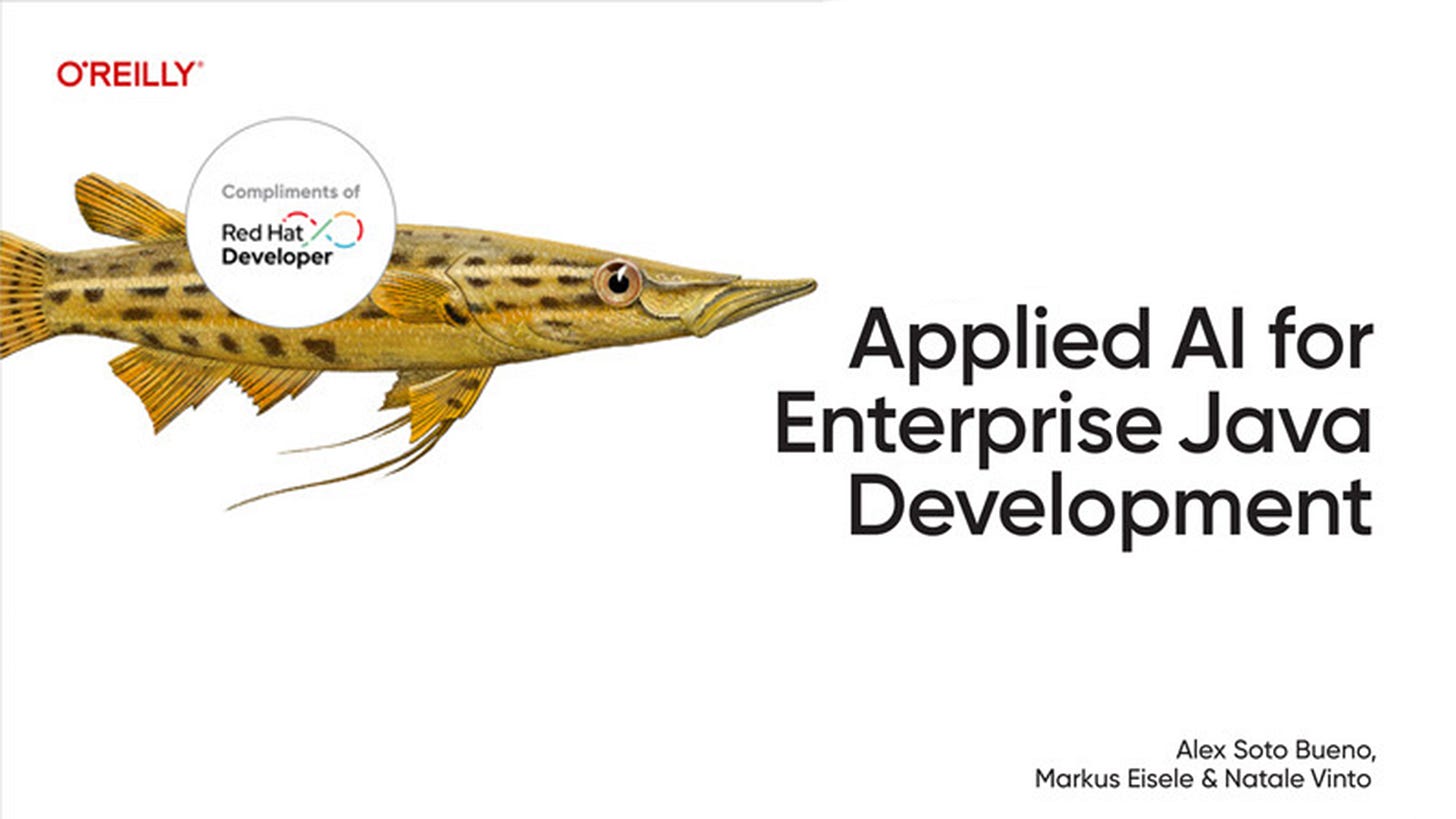 It finally happened. After many early mornings, late nights, and countless cups of coffee, Applied AI for Enterprise Java is now available. You can grab the eBook on O’Reilly or Amazon.
