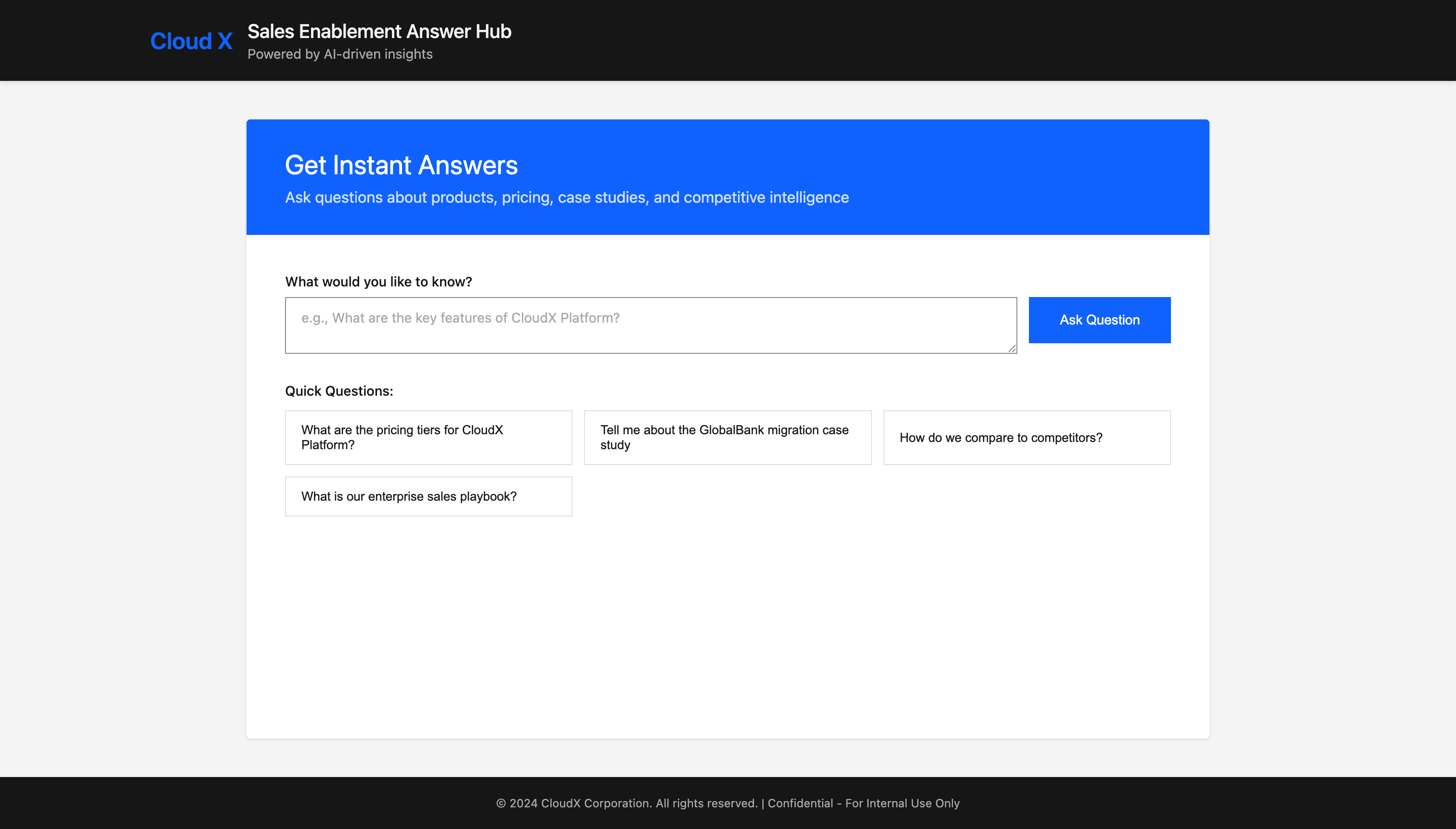 You are a Sales Enablement Copilot for CloudX Enterprise Platform.