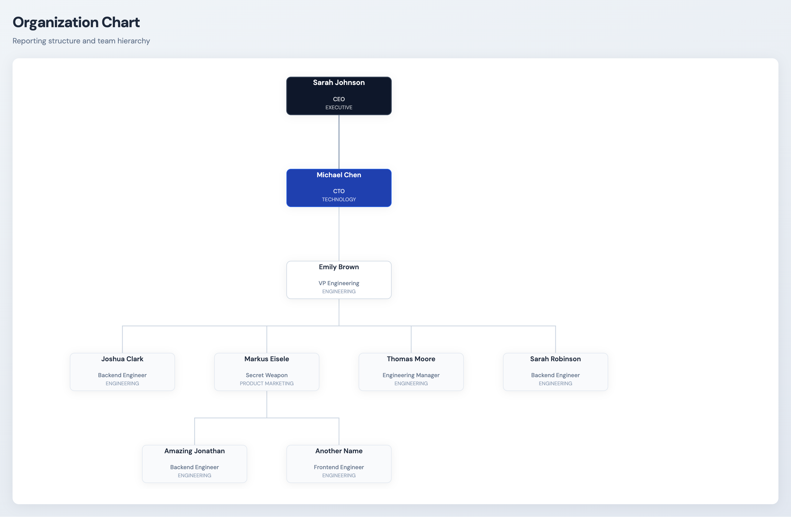 </html>The backend delivers structure. The UI reflects it. When the org changes, the tree changes.