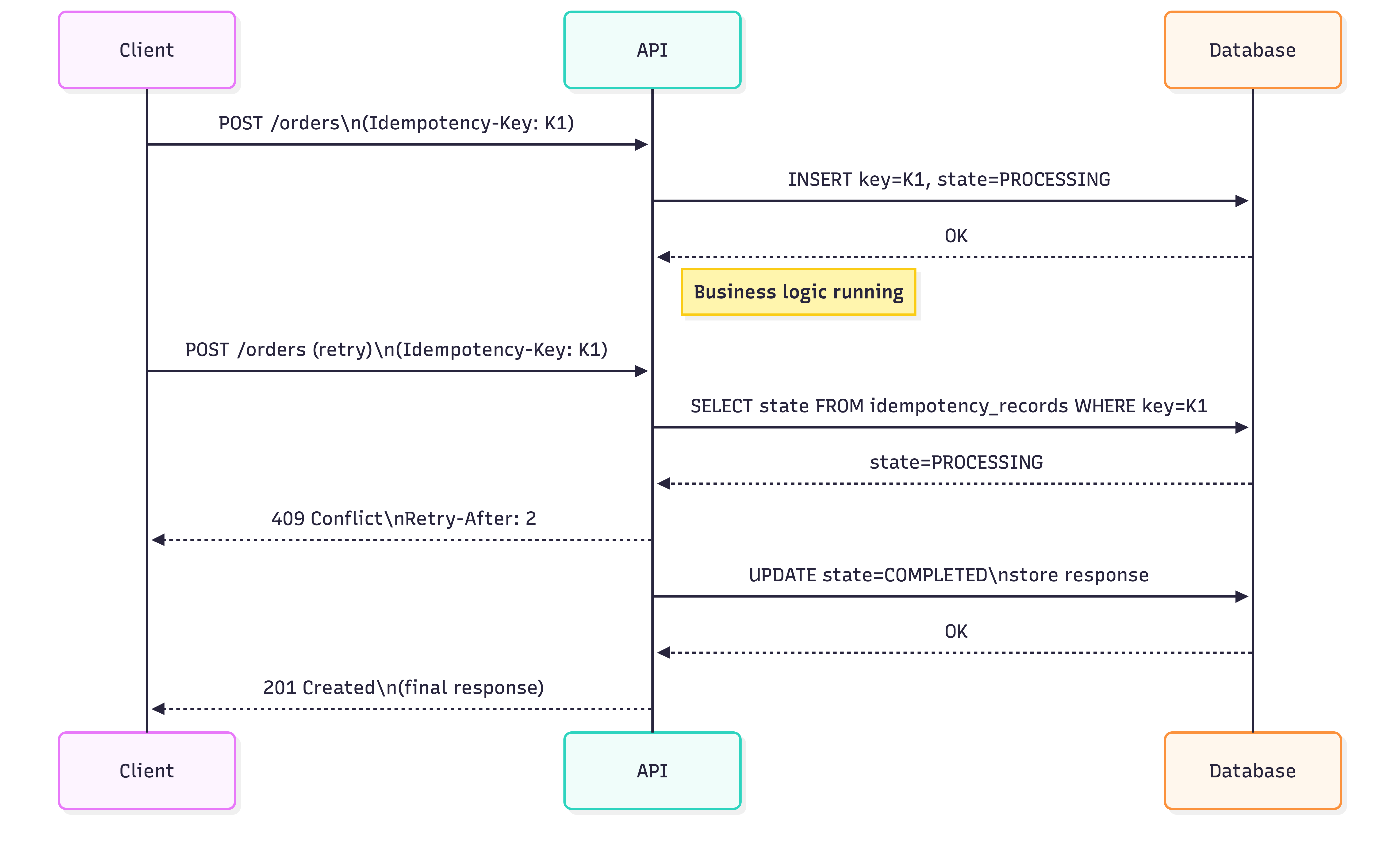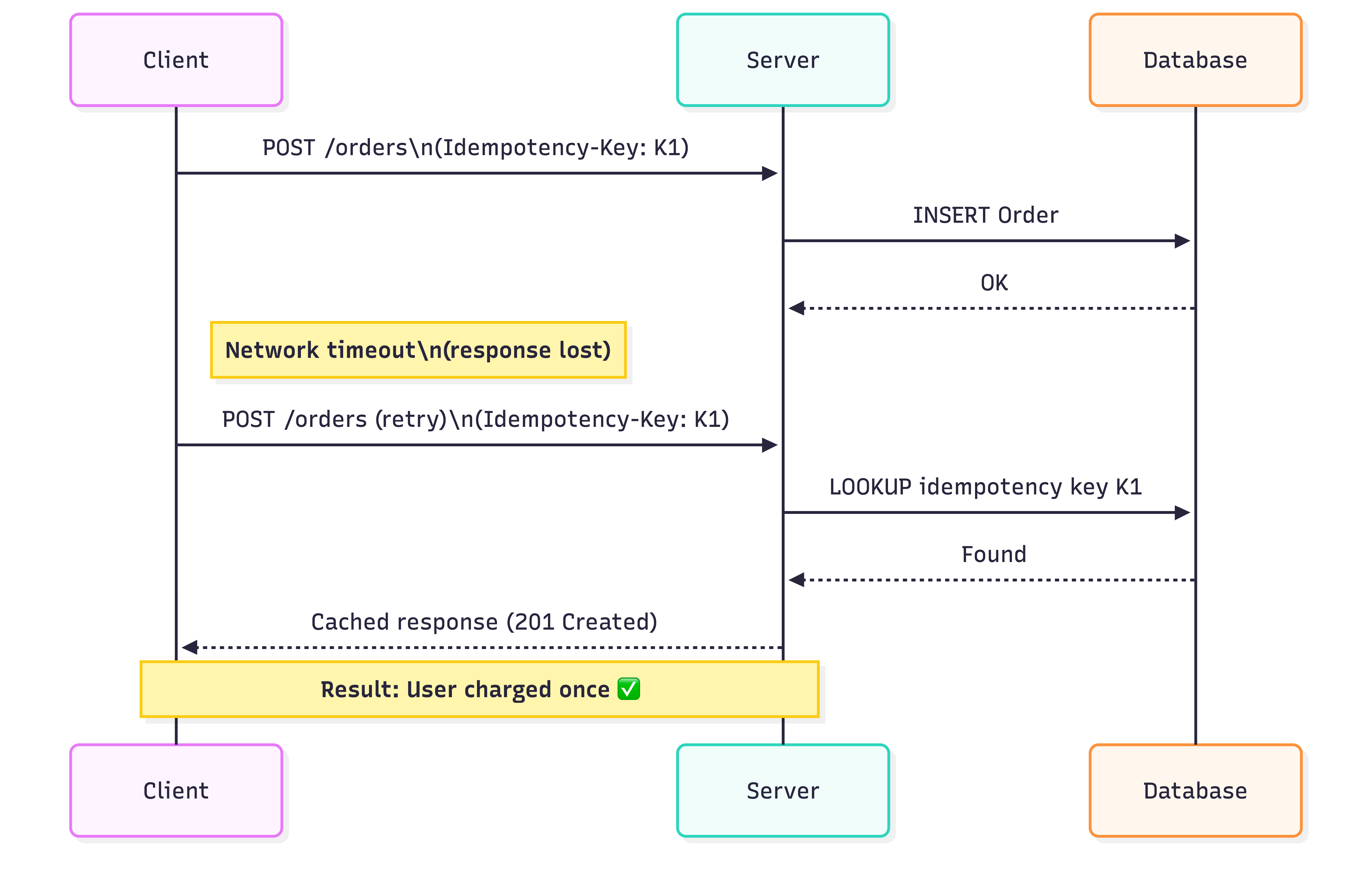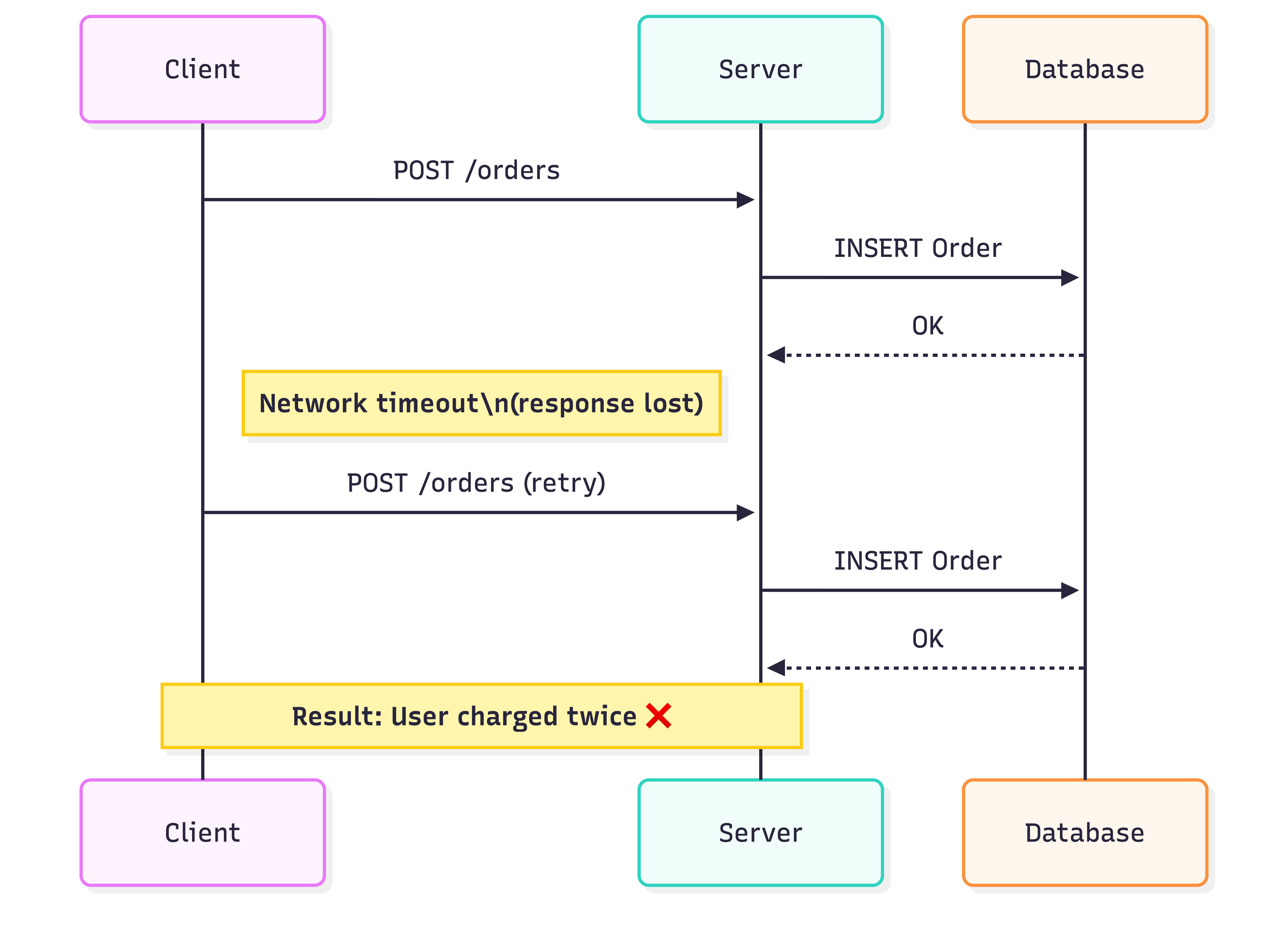 GET /download-reportIf this triggers report generation and notification, retries can create duplicate files and duplicate emails. HTTP method semantics alone are insufficient. Any endpoint with side effects requires idempotency, regardless of verb.