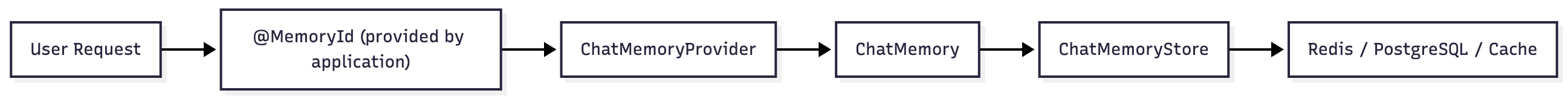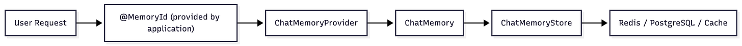 String memoryId = userId + “:” + sessionId;This lets each browser tab or conversation thread maintain its own memory while still being stateless on the server side.