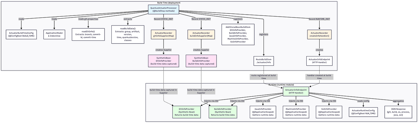 Learn how to generate, extend, and optimize a Quarkus actuator-style endpoint with build-time processing, runtime beans, and native support.