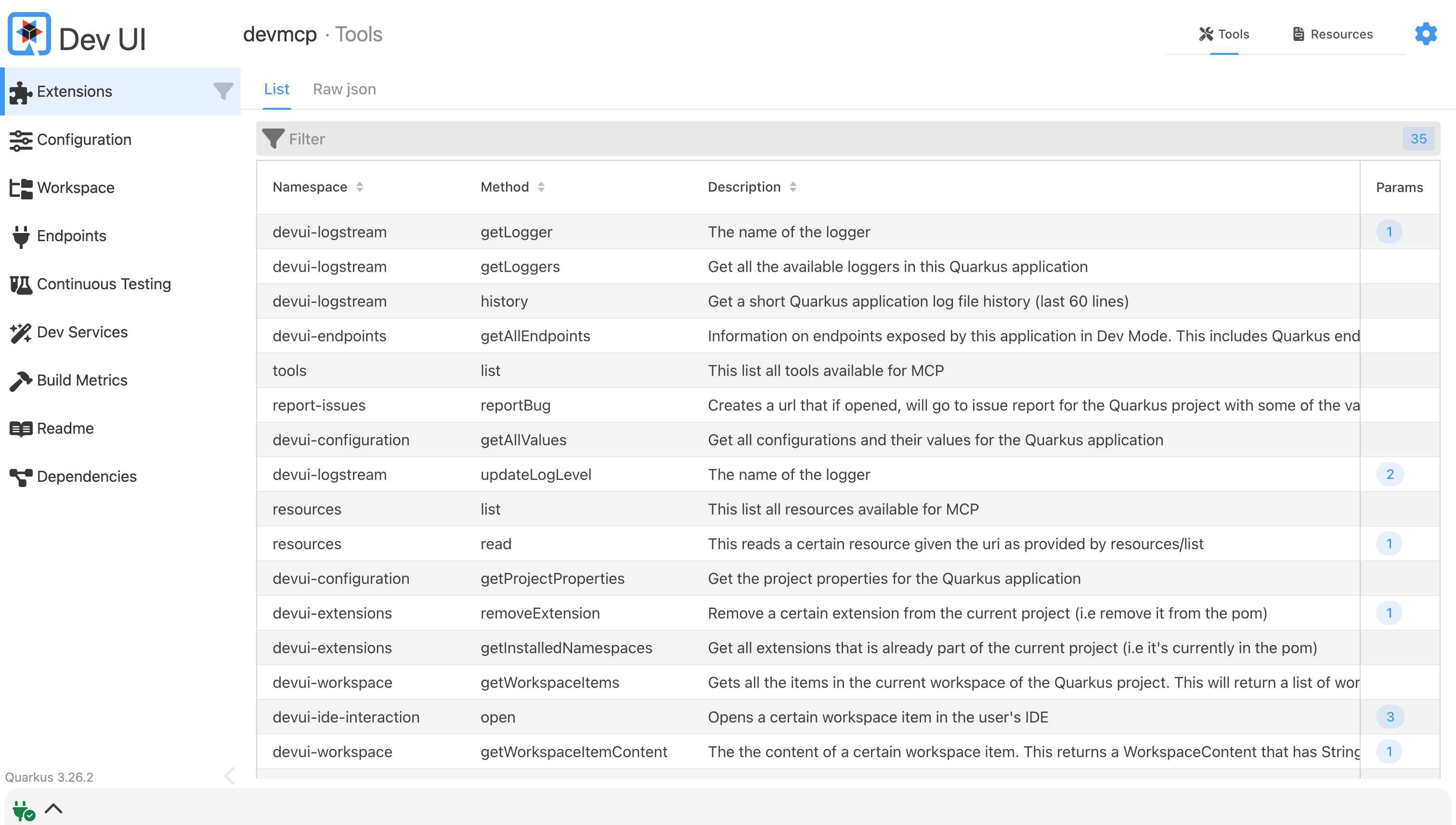 This is just the beginning. More extensions are probably going to expose tools via Quarkus. So watch this space for improvements going forward.
