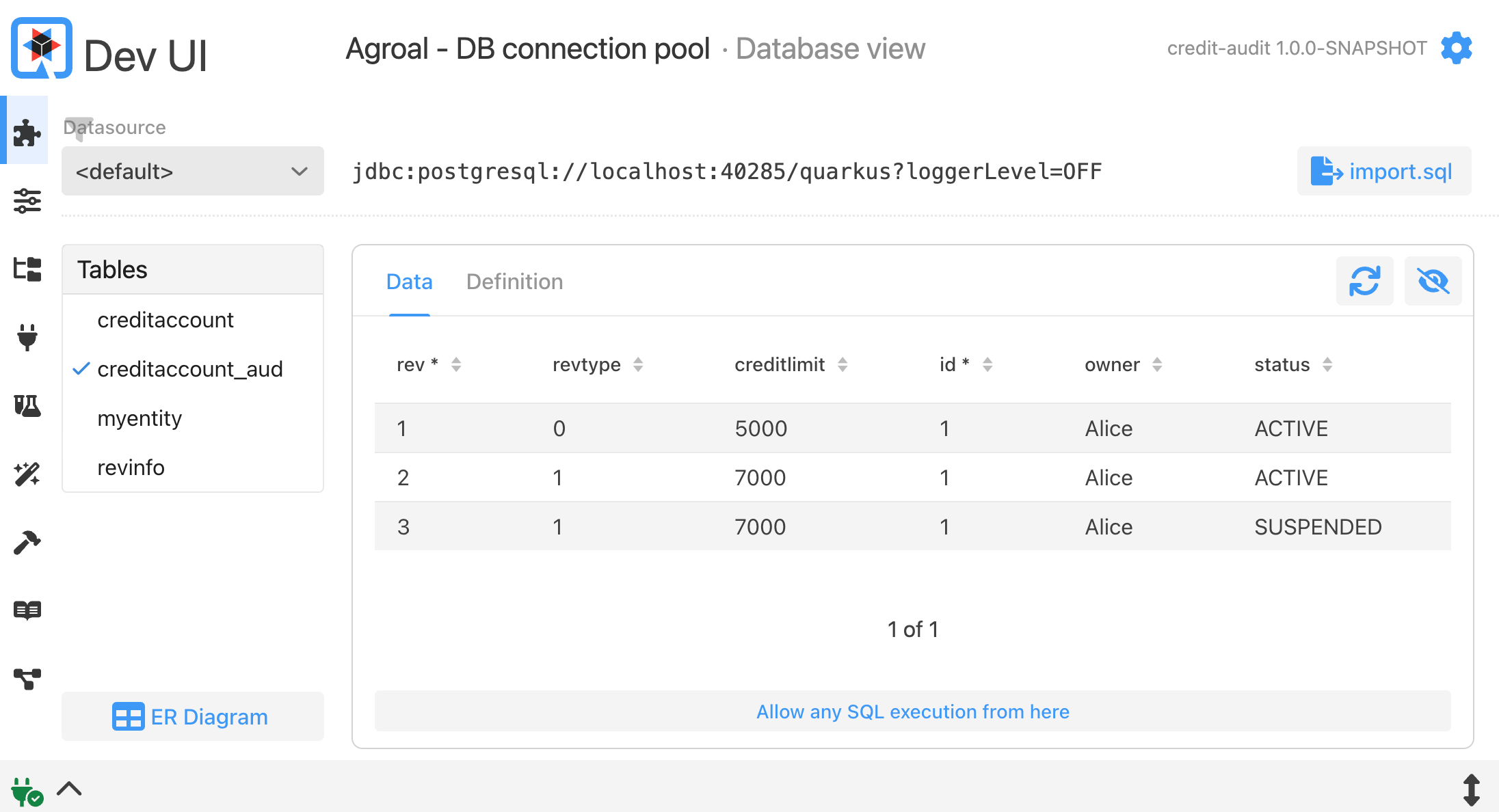 curl http://localhost:8080/accounts/1/audit/revisionsQuerying revisions will return three distinct snapshots.