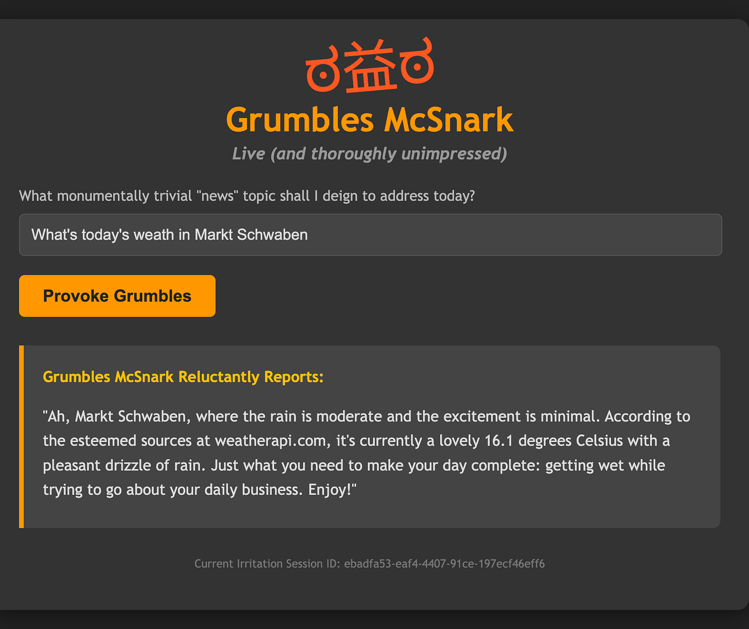 Grumbles McSnark Goes Live: Build a Sarcastic AI News Anchor with Quarkus & Langchain4j & WebSearch Tools
