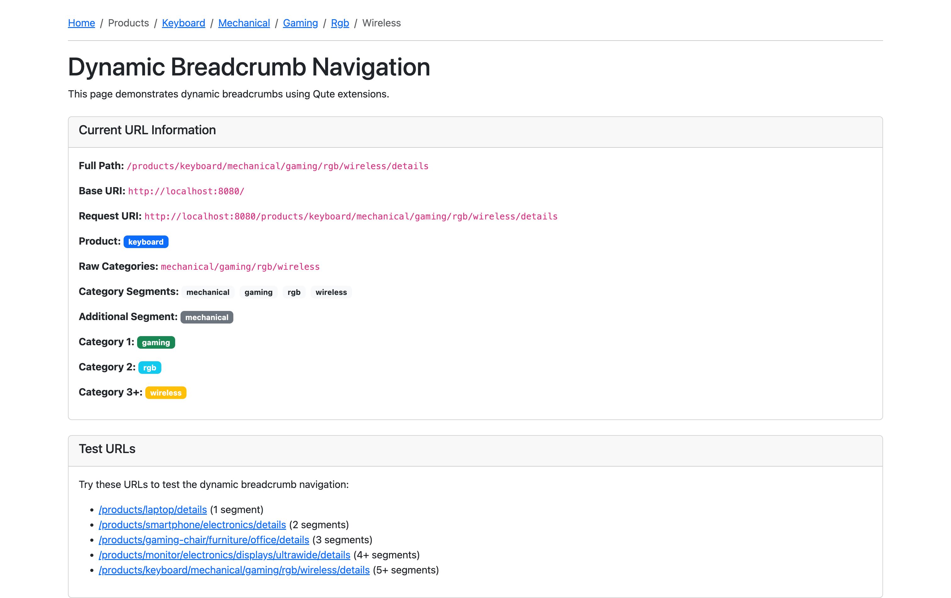 }This injects the current URI into the Qute template, which your breadcrumb.html component consumes.