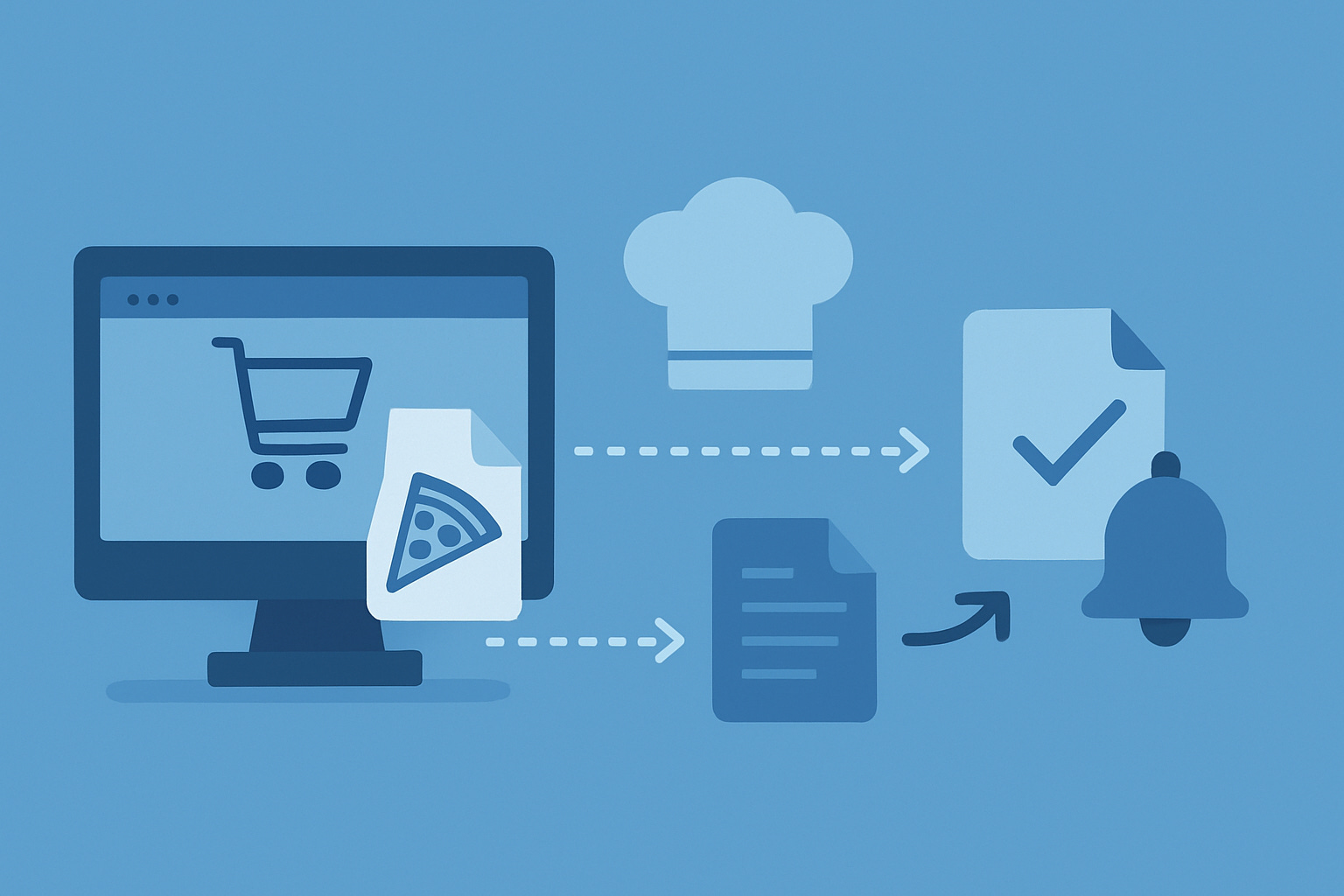 orders enter the system → kitchen reacts independently.