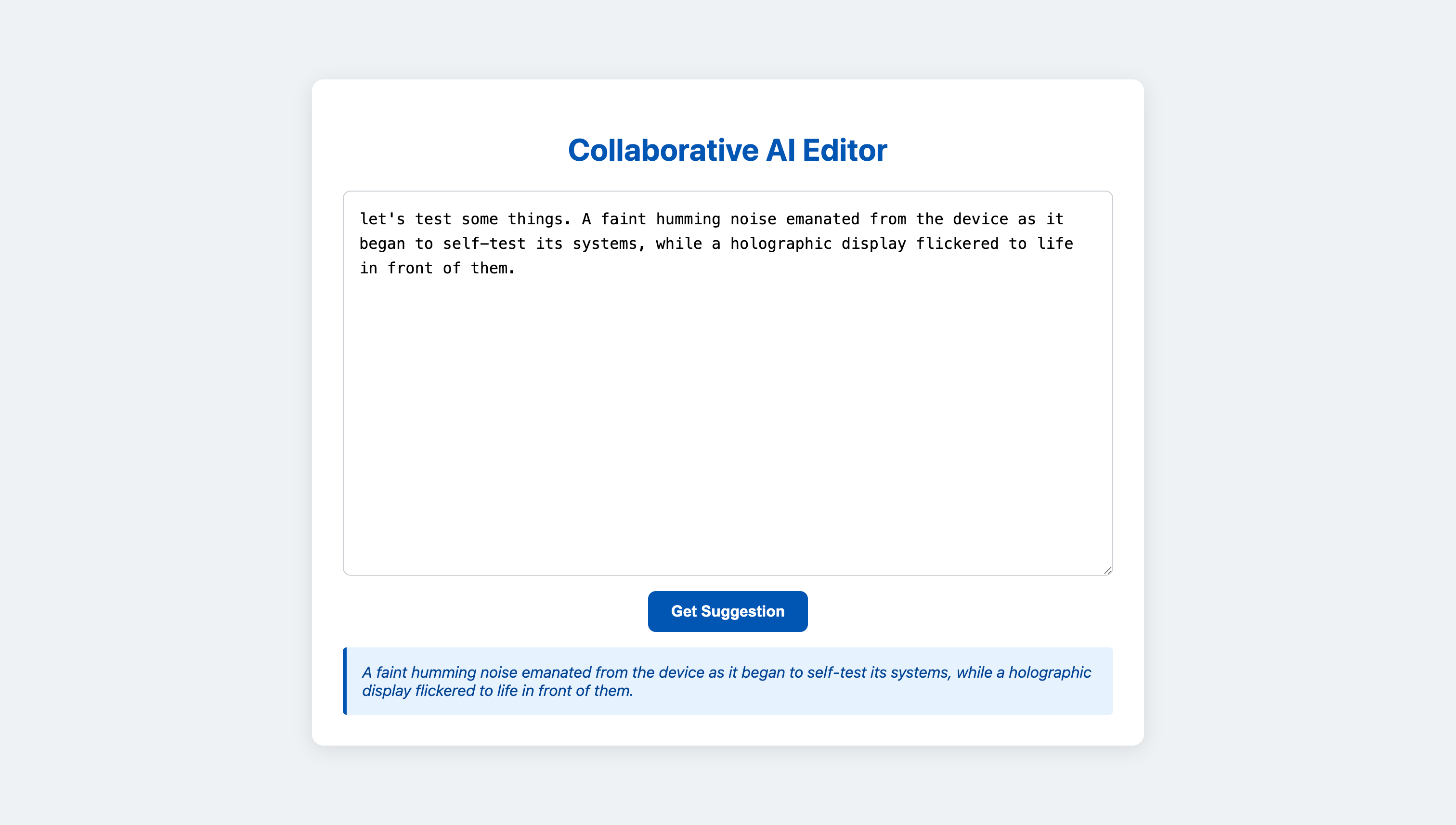 Click “Get Suggestion” and the local AI assistant will generate a continuation based on the current document.